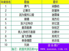2000年MP3已经开始在网络上热火起来,大家不仅可以在市场上通过唱片CD来听歌,也可以在网络上听歌,MP3开始登场舞台,2000年网络上最火的流行歌曲,2000年最热的流行音乐大家一起来看看吧,一起回顾当年市场好听又热门的音乐。1,勇气,梁静茹第一...